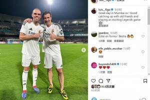 菲戈社媒晒出与佩佩、普约尔、里瓦尔多的合照,配文:“在孟买度过了美好的一天,很高兴能与老朋友叙旧,并参加一场激动人心的传奇赛。”